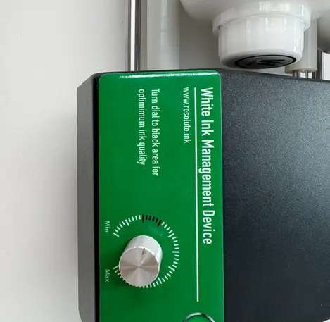 White DTF ink is prone to separation if left undisturbed, impacting print quality. The Resolute White Ink Management System (WIMS) is designed to address this issue. This innovative device gently agitates white DTF ink bottles, preventing sedimentation and maintaining ink consistency. WIMS accommodates up to four 1000ml ink bottles (capacity may vary based on bottle size).